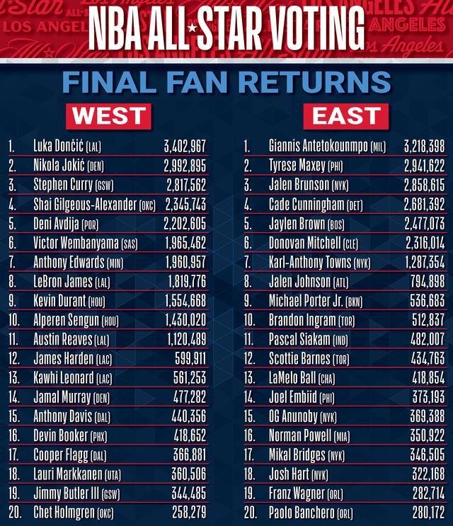 北京时间1月20日,NBA官方公布2026洛杉矶全明星正赛的首发阵容,让我们一起来盘点那些值得关注的纪录与细节: