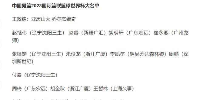 另外,名单中有四人已无缘国家队,具体指王哲林、周鹏、付豪、赵继伟。