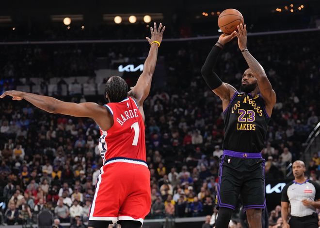 北京时间1月23日,NBA常规赛,快船以112-104击败湖人。这场比赛是哈登的里程碑之战,他的历史抢断数1766+超越伊戈达拉升至第20位。这场比赛哈登的手感依旧不佳21投6中,但他送出10个助攻引来全队7人得分上双,他在关键时刻的选择也是球队制胜的关键。