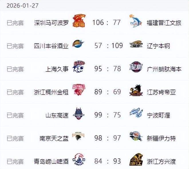 CBA排名大变!辽宁52分大胜,深圳山东凶猛,新疆1分惜败输得冤
