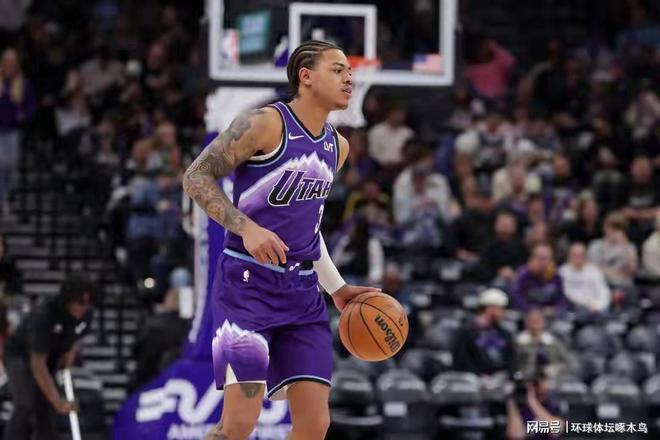 面对篮网队外线的猛烈火力,爵士队方面并不示弱,他们的反击重任主要落在了后卫基昂特·乔治的肩上。与杰明的远程轰炸不同,乔治选择了更具冲击力的方式来撕开对手的防线。他在首节比赛中足足打了9分38秒,几乎打满了第一节,是爵士队场上最活跃的进攻点。乔治多次利用速度和身体优势冲击篮网队的内线,造成了巨大的杀伤。他在比赛中完成了一次令人印象深刻的空接暴扣,这次劲爆的得分不仅点燃了现场的气氛,也展示了这名年轻后卫惊人的弹跳和爆发力。在整个首节比赛中,乔治在运动战中5投4中,效率极高,虽然三分线外1次尝试未能命中,但他通过制造杀伤获得了4次罚球机会并命中2球。此外,他还贡献了3次助攻,有效地串联起了球队的进攻。单节拿下10分的乔治,用实际行动回应了杰明的挑战,确保爵士队在比分上没有被对手甩开。