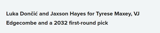 雷霆得到:东契奇、2031年首轮签