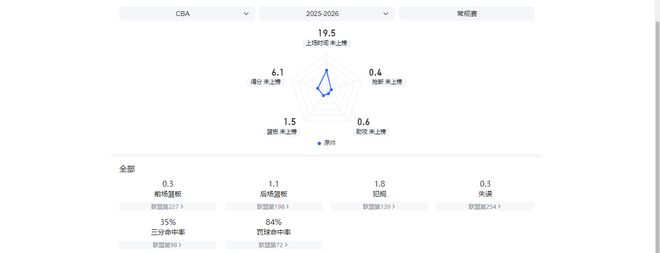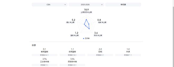 本赛季半程过后,王奕博场均仅能为青岛男篮贡献5.3分1.3篮板3.6助攻,同时场均还能出现1.4次失误和2.4次犯规。而在过往的20次出场中,他得分上双的比赛也只有4场。
