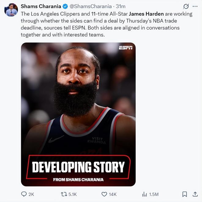 在官方消息发布之前,它更多是球迷和媒体在交易季的谈资,真正决定哈登未来的,仍然是季后赛的战绩走向,以及他与快船管理层在谈判桌前的面对面交流。