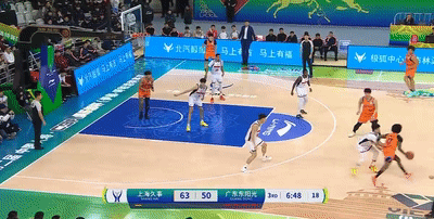 到了下半场,上海重新调整,改打内线进攻,弗格下场,洛夫顿、王哲林持球比重增加,单论力量对抗,黄明依难以招架洛夫顿,第三节开局,黄明依领防洛夫顿,出现了一次防守漏位,让洛夫顿飚进了三分。