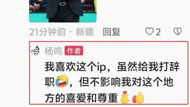 杨鸣坐上解说席,当有新疆球迷晒出了一张他执教辽篮时的照片,并配文“不得不拿出这张照片”。可是谁也没的料到,杨鸣看到后不但没有不开心和生气,反而无比大度地回复了这样一段话:“我喜欢这个ip,虽然给我打辞职了,但不影响我对这个地方的喜爱和尊重!”瞅瞅杨鸣这格局,要是换成是别人,被新疆队给“打辞职了”,岂不是记恨一辈子?