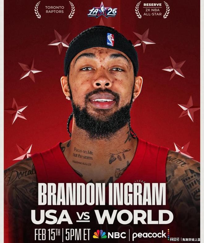 NBA官方今日宣布,NBA总裁亚当萧华指定布兰登-英格拉姆入选2026年洛杉矶全明星,替代因膝伤缺席全明星赛的勇士当家球星史蒂芬库里,他将代表美国队出战。