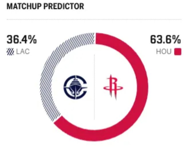 赛前,美媒ESPN对本场比赛进行了胜率预测,火箭队胜率高达63.8%,快船胜率则仅有36.2% ,差距还挺明显。