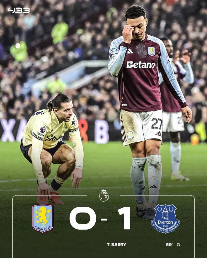 晚一天出战的维拉,主场面对联赛中游球队埃弗顿,最终0-1输掉了比赛。进入2026年之后,维拉在英超只赢一场比赛,过去2轮比赛更是1平1负,未尝胜绩。面对埃弗顿的低位防守,维拉主场狂射18脚未能洞穿对手球门。在马伦转战罗马之后,维拉替补席也显得人员单薄,埃梅里仅做出了3次换人调整。在各项赛事11连胜的记录被阿森纳终结之后,维拉进入了低迷期。在积分榜上,维拉与曼城同积43分,暂时落后领头羊阿森纳7分。