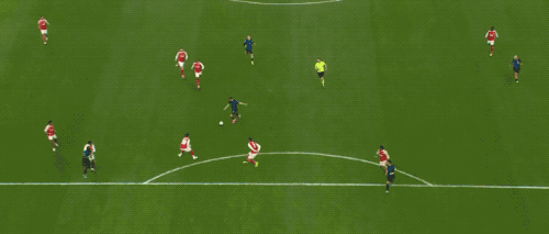 半场结束,客场作战的阿森纳2-1暂时领先。下半场开始只有6分钟,阿森纳在前场打出配合。