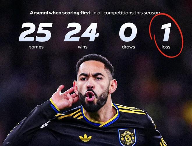 据统计,这是阿森纳本赛季各项赛事首次在先进球的比赛中输球,此前24场率先破门的比赛,阿森纳全部取胜。