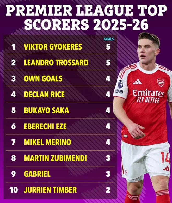 目前来看本赛季打到了23轮,阿森纳遭遇到了进球乏力。在整体的英超进球数排行方面,约克雷斯进5个球,居然是球队的最佳射手,和他并列的还有特罗萨德的5个球的。而排名第三的萨卡、莱斯、梅里诺、艾泽等人只有4球。苏维门迪、加布里埃尔的三球和廷伯的两球也能够排进前10。由此可看出他们是多点开花,可是突出太少了。在造成对手乌龙球的情况也有4粒,这就是他们在英超的进球分布了。