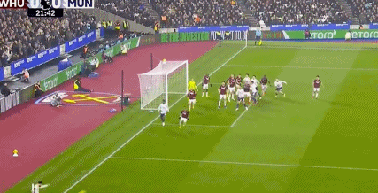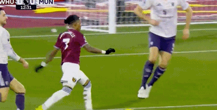 第50分钟,迪乌夫后场长传,卢克-肖冒顶,绍切克策动反击,随后接应鲍恩的传中,门前巧射命中,西汉姆联打破僵局,1-0!