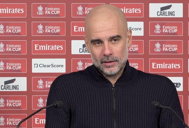 英格兰足总杯第4轮,曼城主场2-0战胜索尔福德城,曼城主帅瓜迪奥拉出席了赛后新闻发布会。