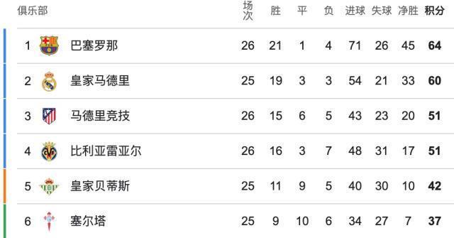另一场比赛,马竞客场1比0小胜皇家奥维耶多,第90+4分钟阿尔瓦雷斯打入全场唯一进球。马竞积分追平比利亚雷亚尔,列积分榜第3(首循环2比0胜黄潜,净胜球也多3个),落后皇马9分,落后巴萨13分。